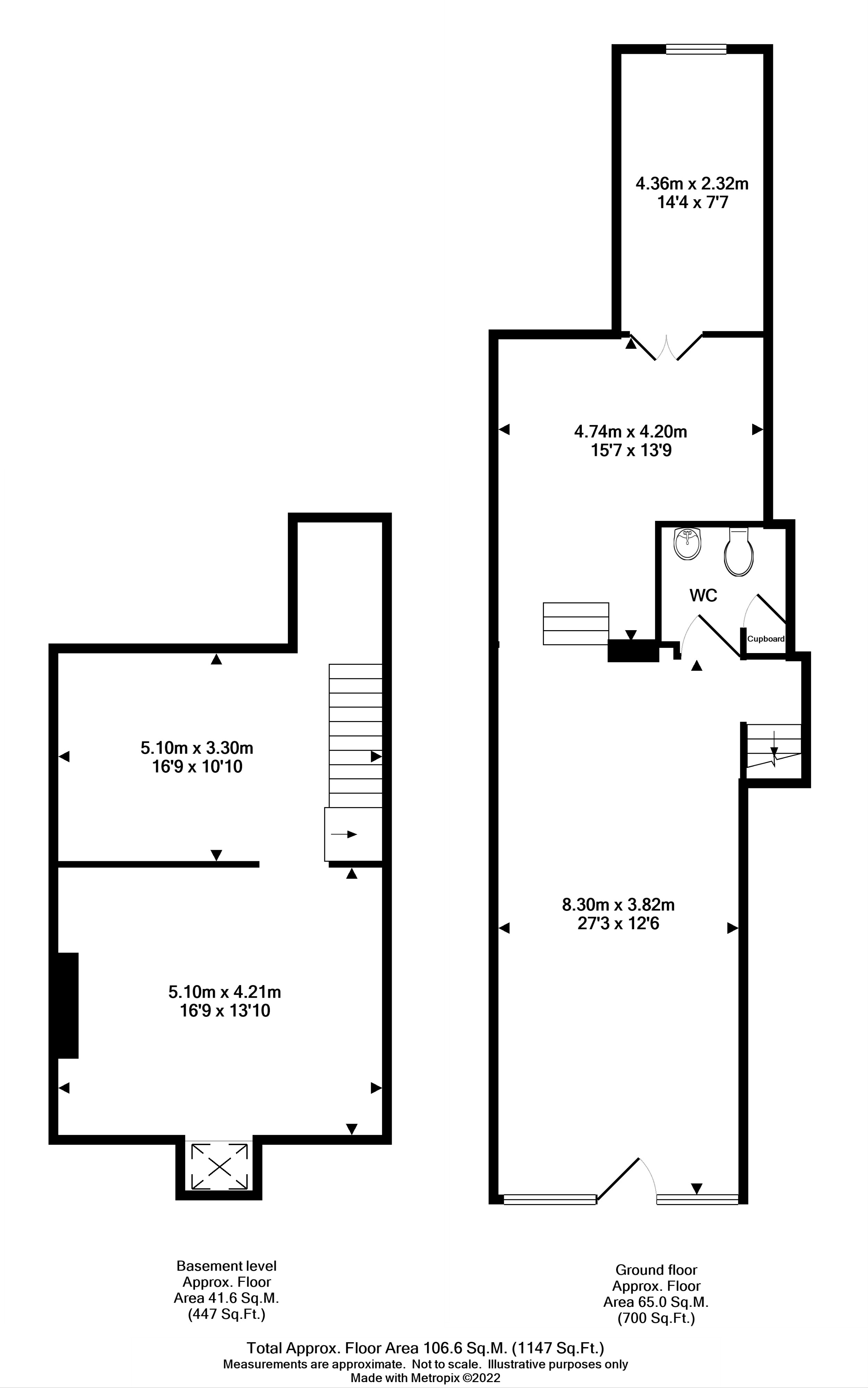 The unit is nicely presented throughout and comprises an office area and W.C. on the ground floor with two further offices on the lower ground floor measuring a total of approximately 700 sq ft. Additionally there is a basement with good headroom of approximately 447 sq ft providing kitchen, office and store room. Total area of approximately 1147 sq ft.